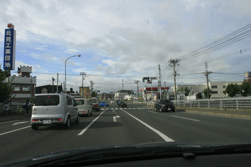 直進すると訓子府・置戸方面、右折で無加川町、豊地の京セラ北見工場方向