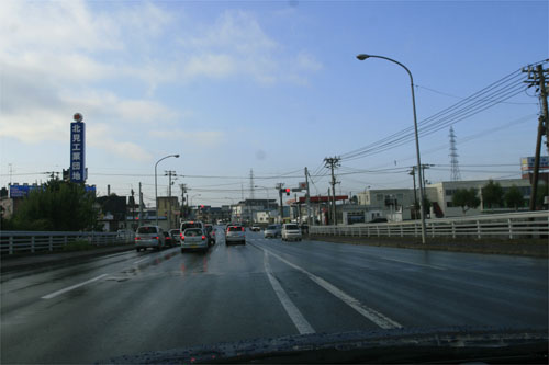 午前8時過ぎ、とん田通り、無加川橋を渡って錦町の南岸通りとの交差点