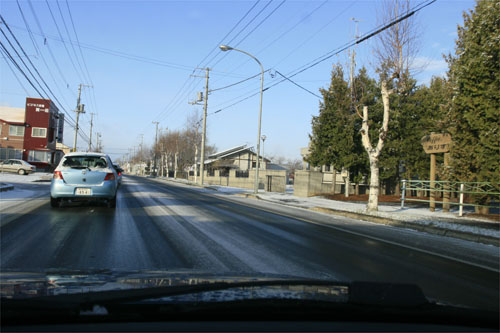 凍結路面の影響で渋滞気味の末広町の南岸通り