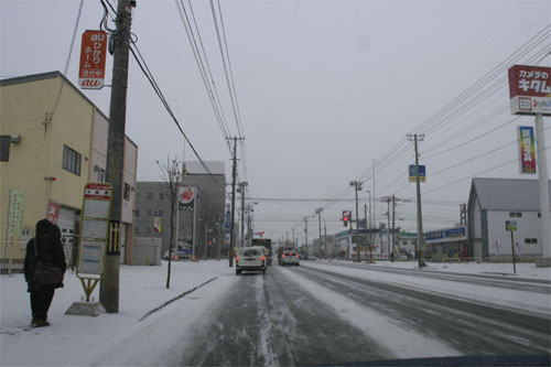 午前8時過ぎ、国道39号、北4条通り交差点から緑園通り方向