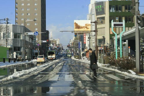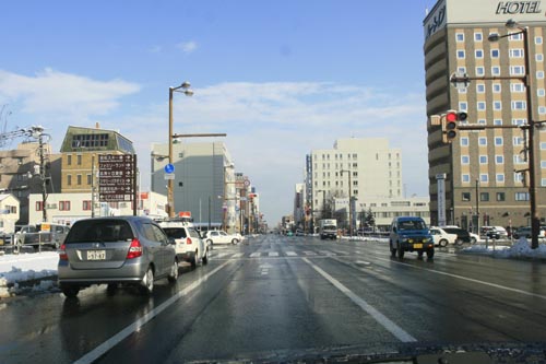 午前9時30分、国道39号、大通り西4丁目通り交差点から北見駅方向