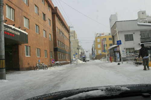 午前8時過ぎ、北3条通りを松浦水産側から小林病院方向