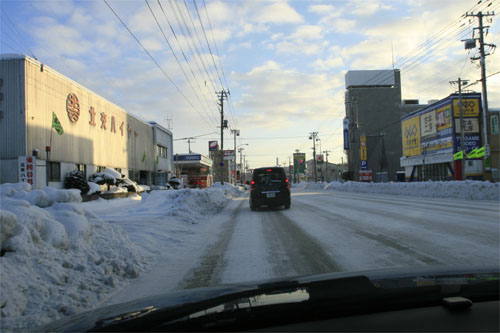 とん田通り、野付牛自動車学校前バス停から無加川橋