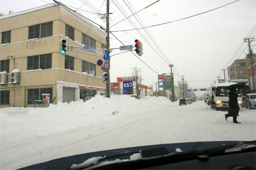 午前8時過ぎ、国道39号、北4条通り交差点から緑園通り方向