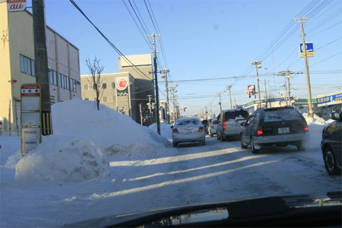 午前8時過ぎ、国道39号、北4条通り交差点から緑園通り方向