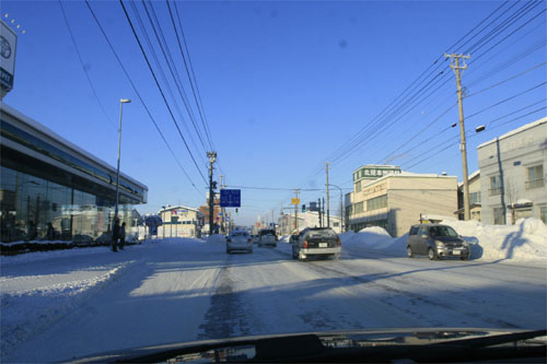 午前8時過ぎ、国道39号、北見トヨペット前からとん田通り方向
