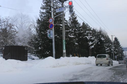 午後3時前、北4条通り、東13丁目の野付牛通り交差点手前