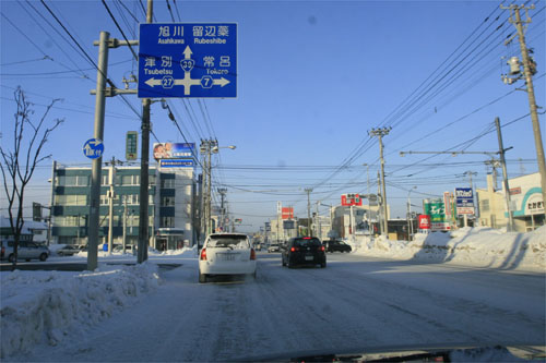 午前8時過ぎ、国道39号、北見トヨペット前からとん田通り方向