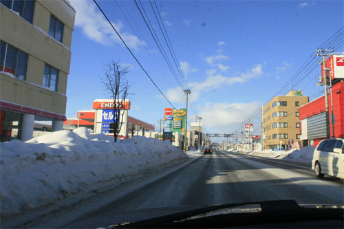 午前8時過ぎ、国道39号、北4条通り交差点から緑園通り方向