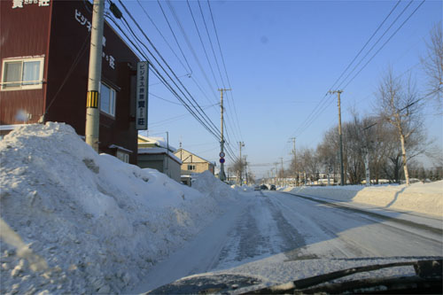 午前8時過ぎ、南岸通り、野付牛自動車学校前から無加川町方向