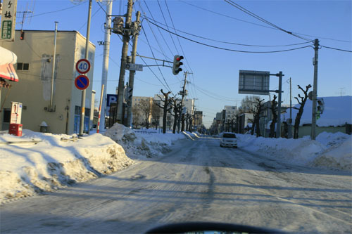 とん田通り、野付牛自動車学校前バス停から無加川橋