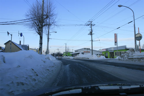 午前8時過ぎ、南岸通り、野付牛自動車学校前から無加川町方向