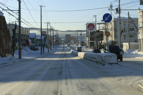 とん田通り、北見中央病院横から南大通り交差点方向