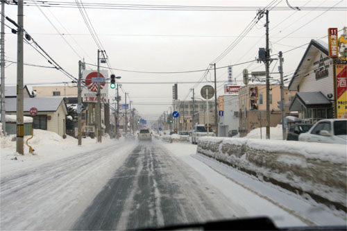 とん田通り、野付牛自動車学校前バス停から無加川橋