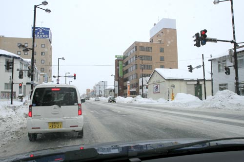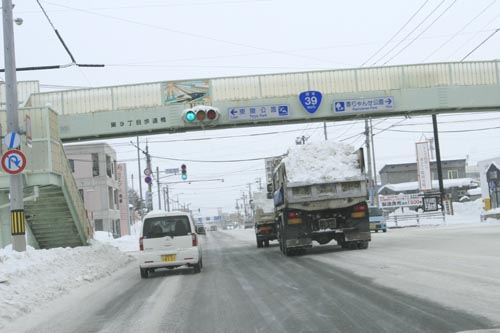 午前9時40分、国道39号、大通り西4丁目通り交差点から北見駅方向