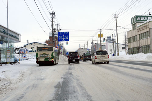 午前8時過ぎ、国道39号、北見トヨペット前からとん田通り方向
