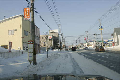 午前8時過ぎ、国道39号、北4条通り交差点から緑園通り方向