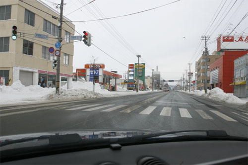 午前8時過ぎ、国道39号、北4条通り交差点から緑園通り方向