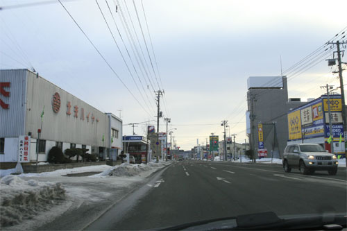 とん田通り、野付牛自動車学校前バス停から無加川橋
