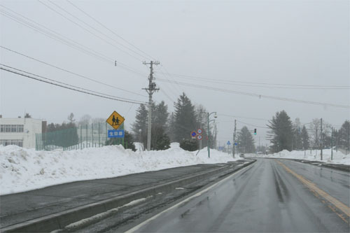 午後2時半、国道242号、生田原中学校前から市街方向