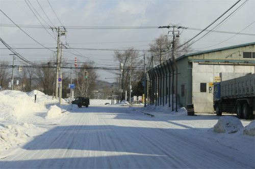 とん田通り、野付牛自動車学校前バス停から無加川橋