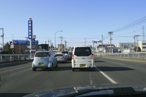 午前7時50分、とん田通り、無加川橋から錦町の南岸通り交差点方向