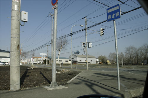 とん田通り、野付牛自動車学校前バス停から無加川橋