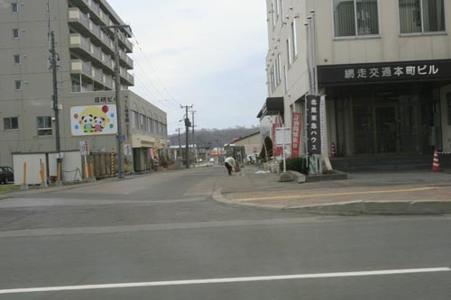写真奥が南仲町のホクレンスタンド方向で北見ハッカ記念館裏側