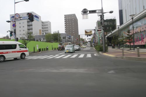 写真奥が北1条通りの交差点