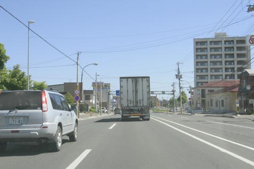 午前9時半、国道39号、北見スイミングスクール前から北見駅方向