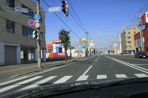 午前7時50分、国道39号、北4条通り交差点からとん田通り方向
