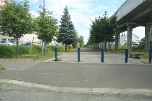 前方はJR石北本線高架橋、写真奥が小泉中学校方向