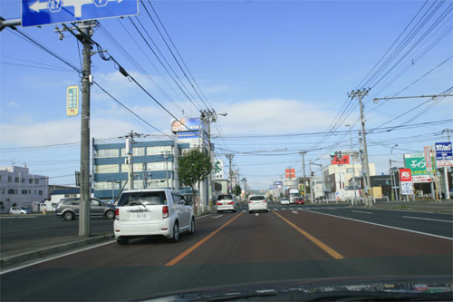 午前7時50分、国道39号、北4条通り交差点からとん田通り方向