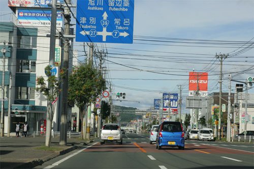 午前7時50分、北4条通り、国道39号交差点からとん田通り方向