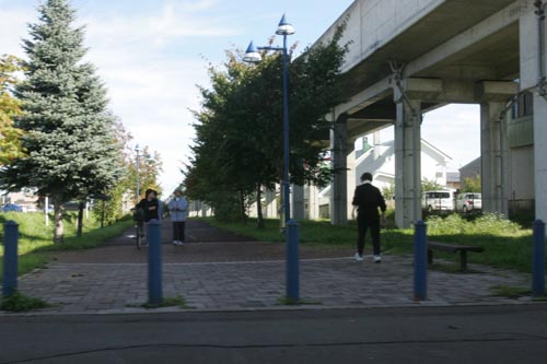 前方はJR石北本線高架橋、写真奥が小泉中学校方向