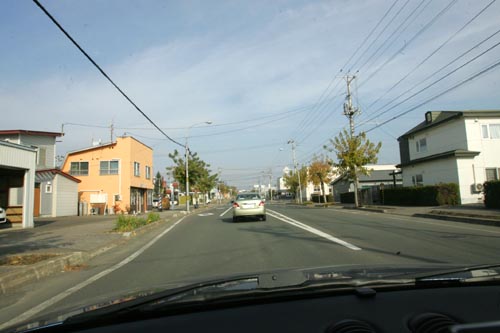 常盤通り、北見市民会館正面ゲート前から国道39号の五差路方向