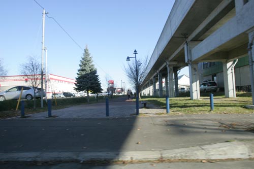 前方はJR石北本線高架橋、写真奥が小泉中学校方向