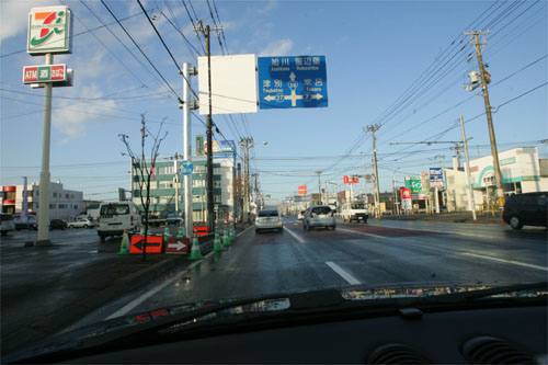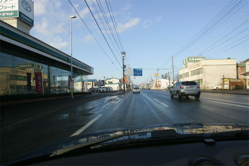 午前7時50分、北4条通りの国道39号交差点から緑園通り方向