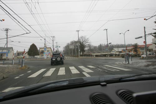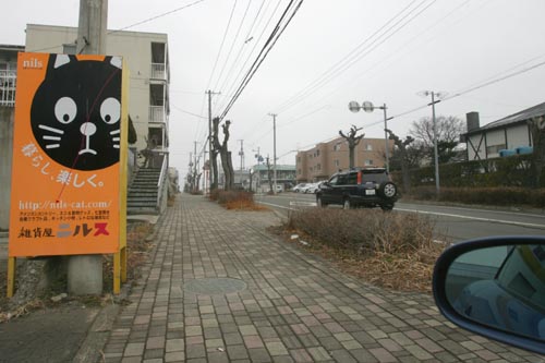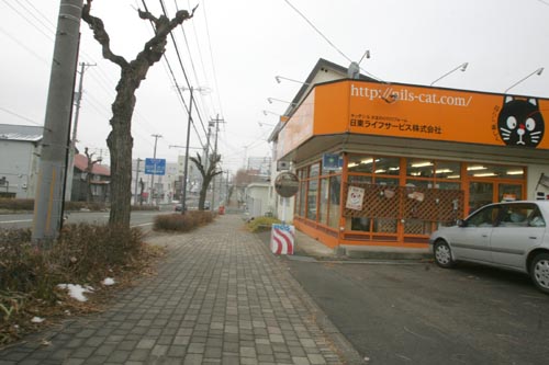 雑貨屋ニルスの駐車場から北4条通りの仁頃通り交差点方向