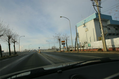 とん田通り、無加川橋を過ぎて錦町の南岸通り交差点