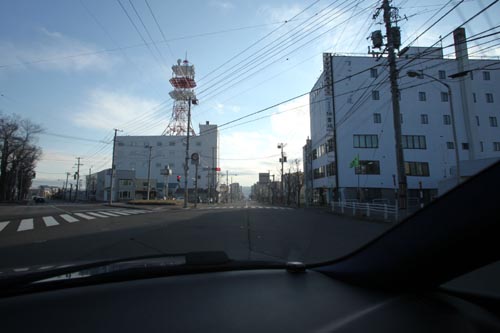 夕陽ヶ丘通り、北見市立中央小学校前から学園通り方向