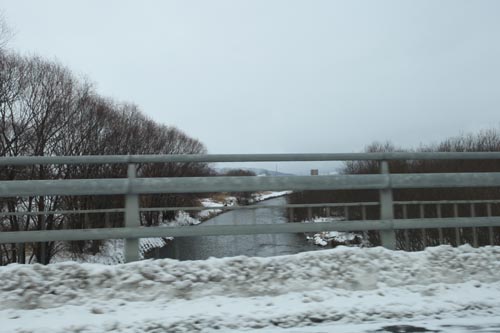 写真奥に廃線になった旧池北線無加川鉄橋跡