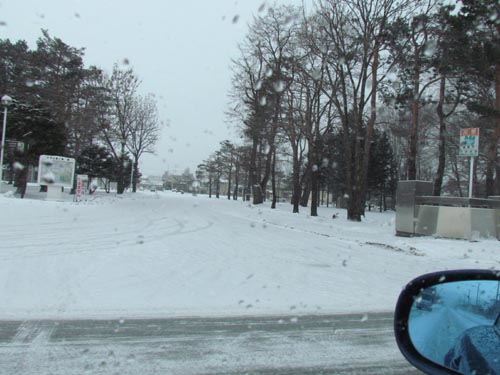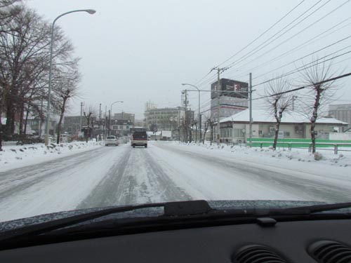 常盤通り、北見市民会館正面ゲート前から国道39号の五差路方向