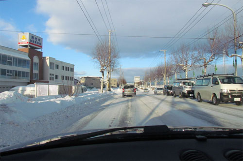 午前7時50分、野付牛自動車学校前の南岸通りを無加川町方向