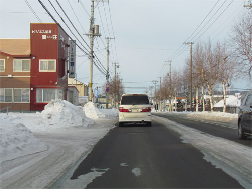 午前7時50分、野付牛自動車学校前の南岸通りを無加川町方向