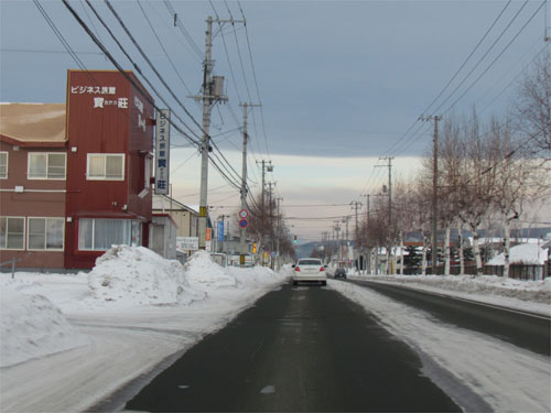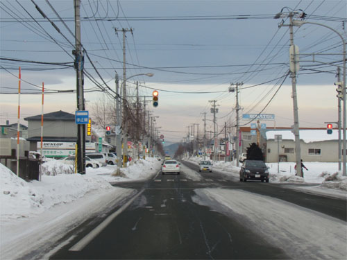 午前7時50分、野付牛自動車学校前の南岸通りを無加川町方向