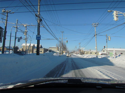 午前7時50分、野付牛自動車学校前の南岸通りを無加川町方向
