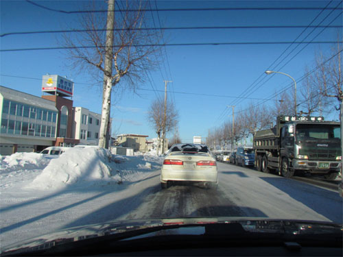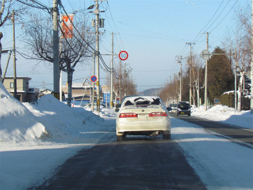 午前7時50分、野付牛自動車学校前の南岸通りを無加川町方向
