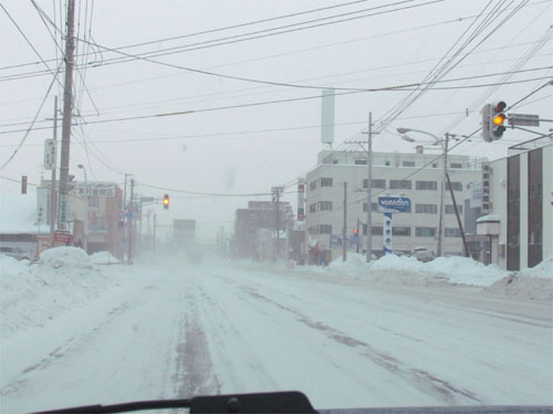 末広町の南岸通り、西4号線バス停前から野付牛自動車学校方向