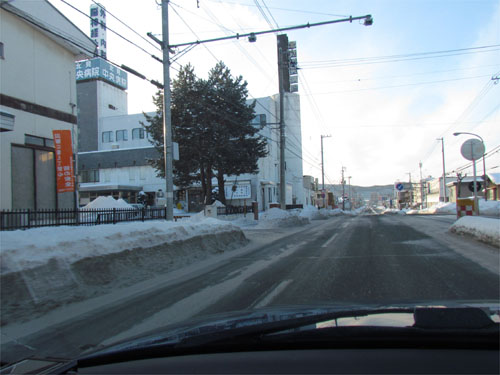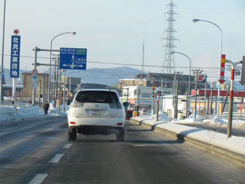 午前7時50分、とん田通り、北見中央病院横